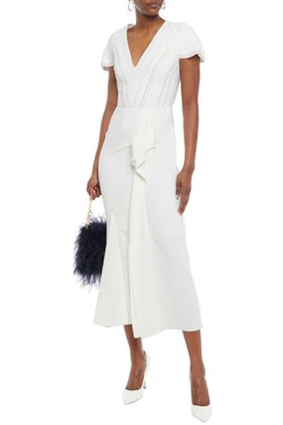 Roland Mouret Bates Embroidered Stretch Crepe Midi Dress In White Modesens